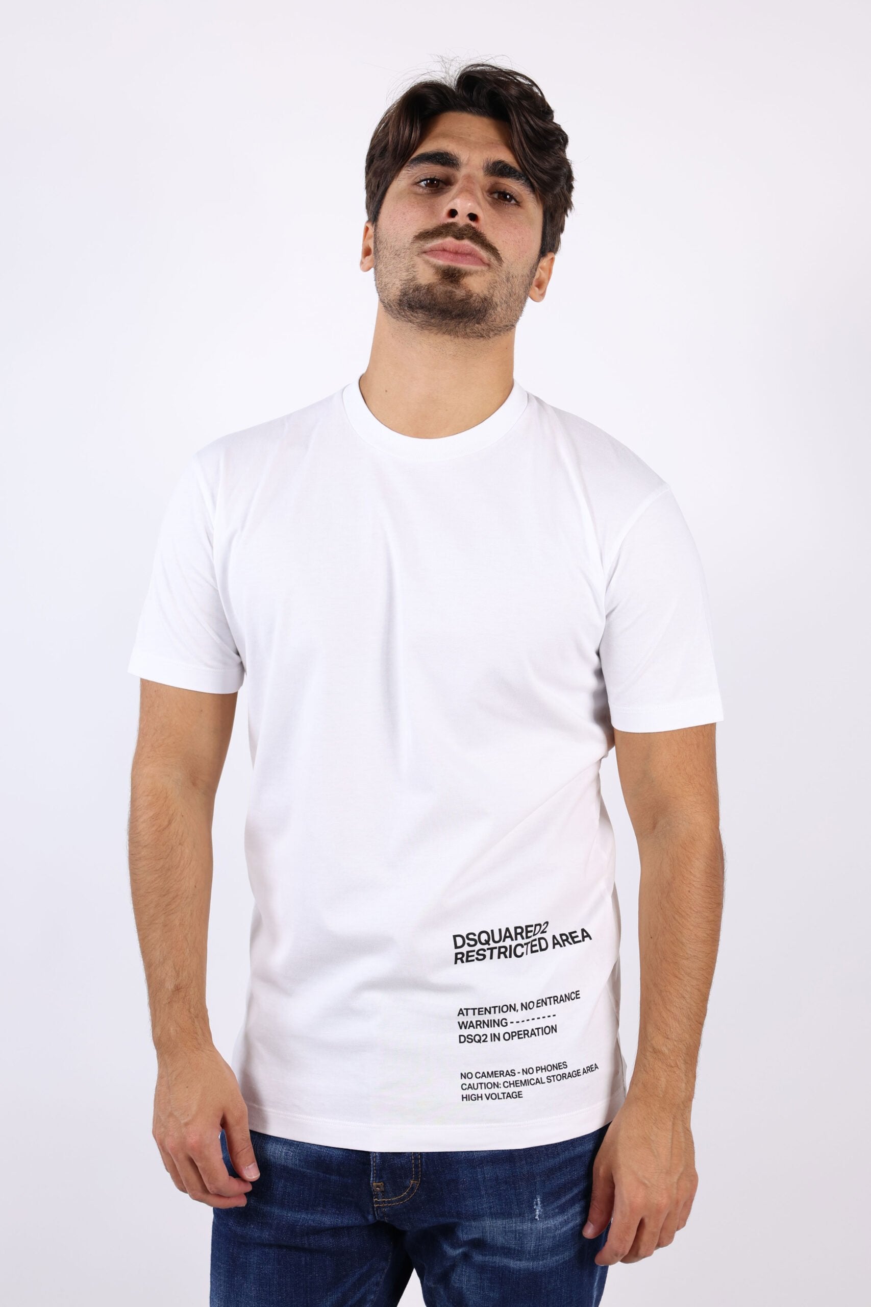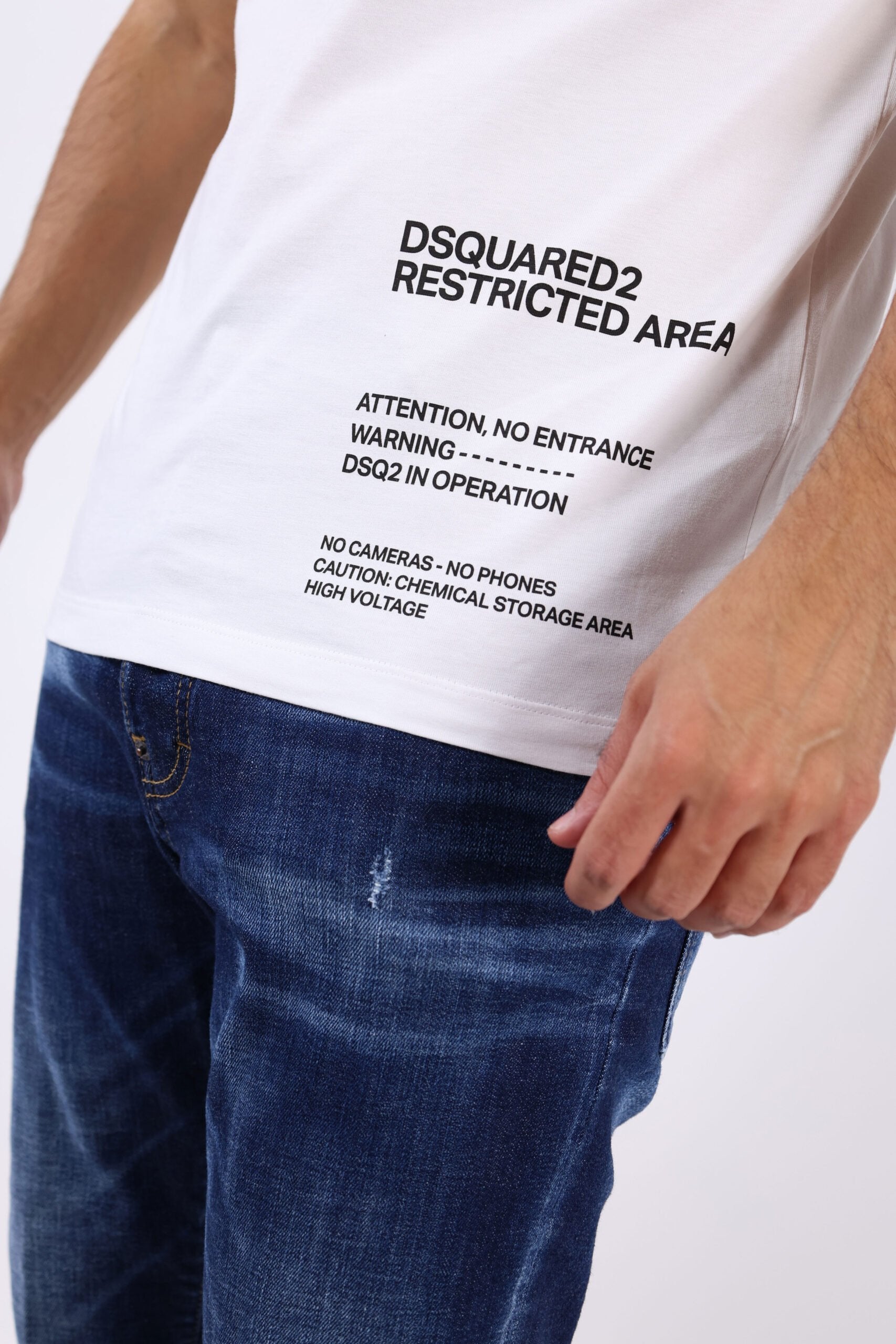 Camiseta blanca con maxilogo bajo "dsquared2 restriction" - S
