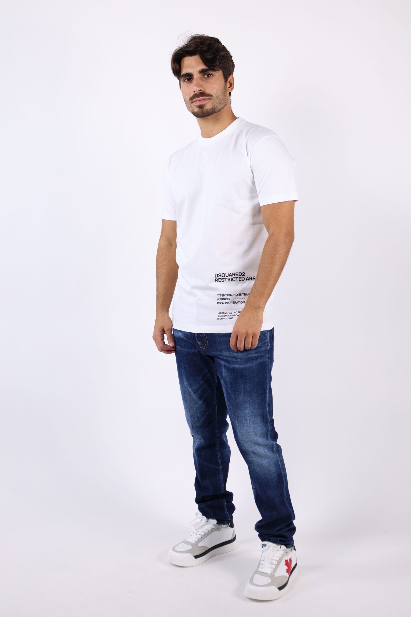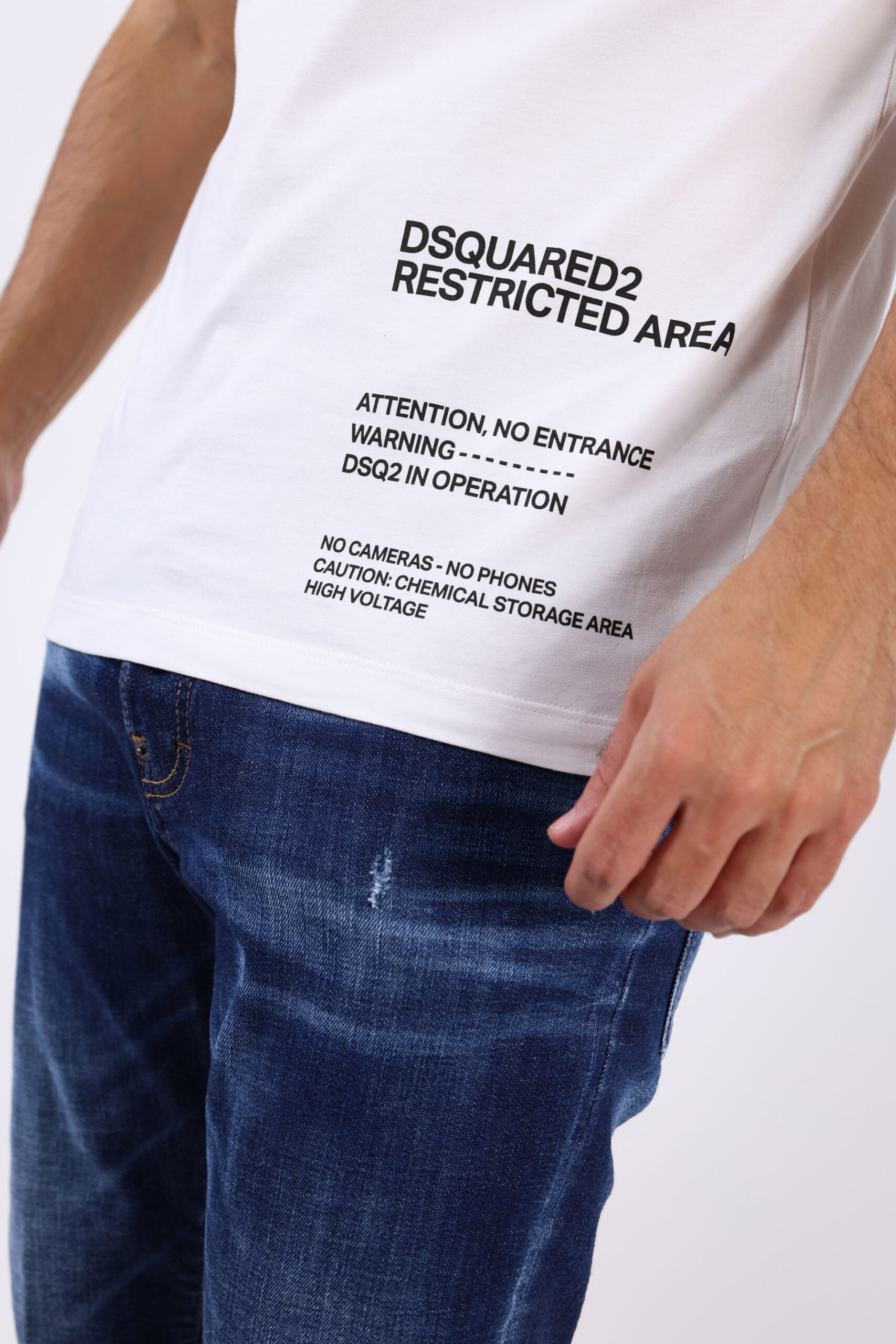 Camiseta blanca con maxilogo bajo "dsquared2 restriction" - XL
