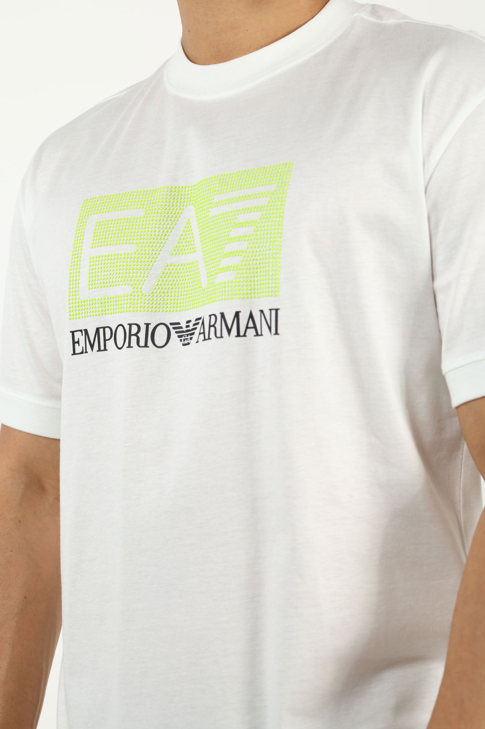 Camiseta blanca con maxilogo "lux identity" en recuadro verde - M
