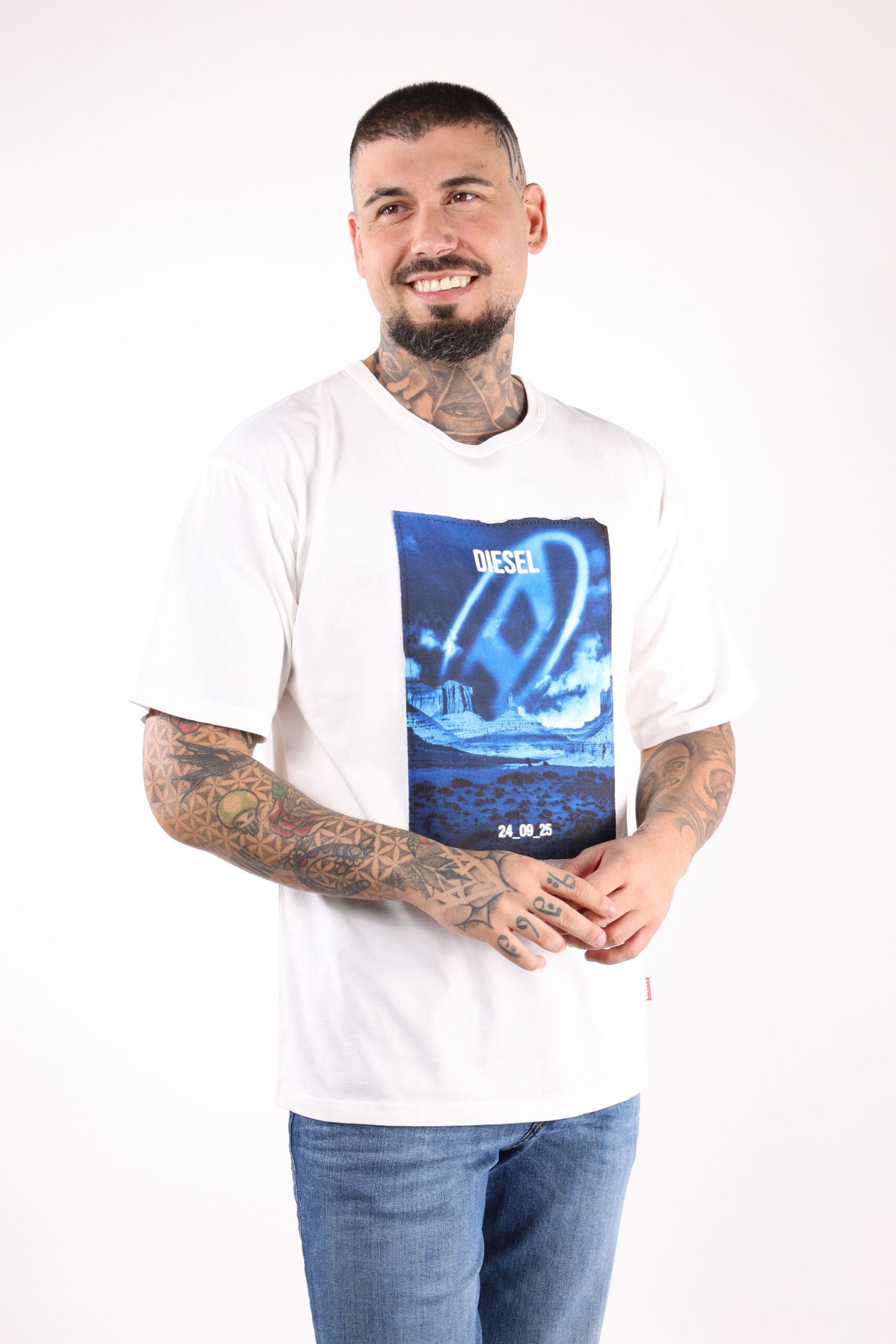 Camiseta blanca con maxilogo póster "megoval-D" - L