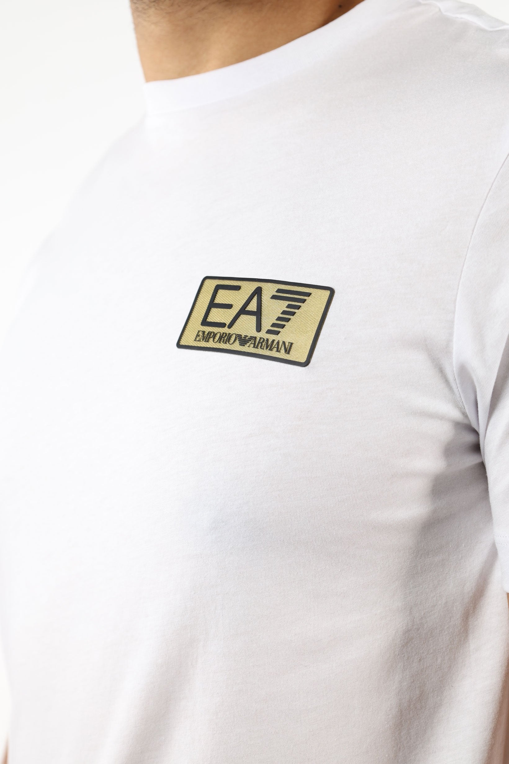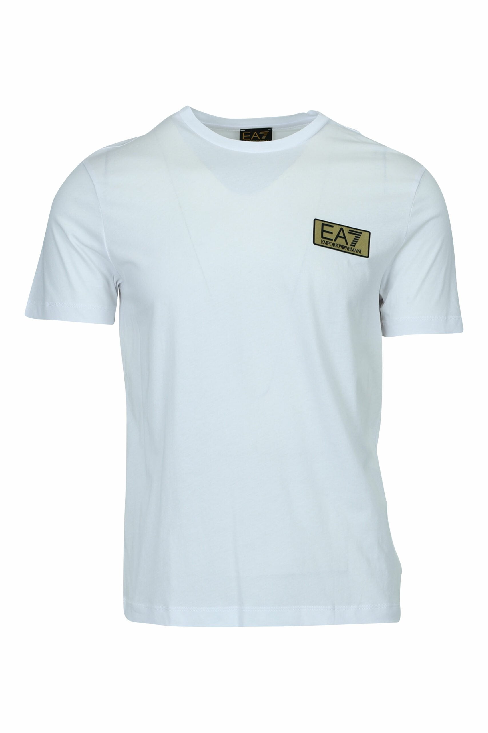 Camiseta blanca con minilogo "lux identity" en placa dorada - S