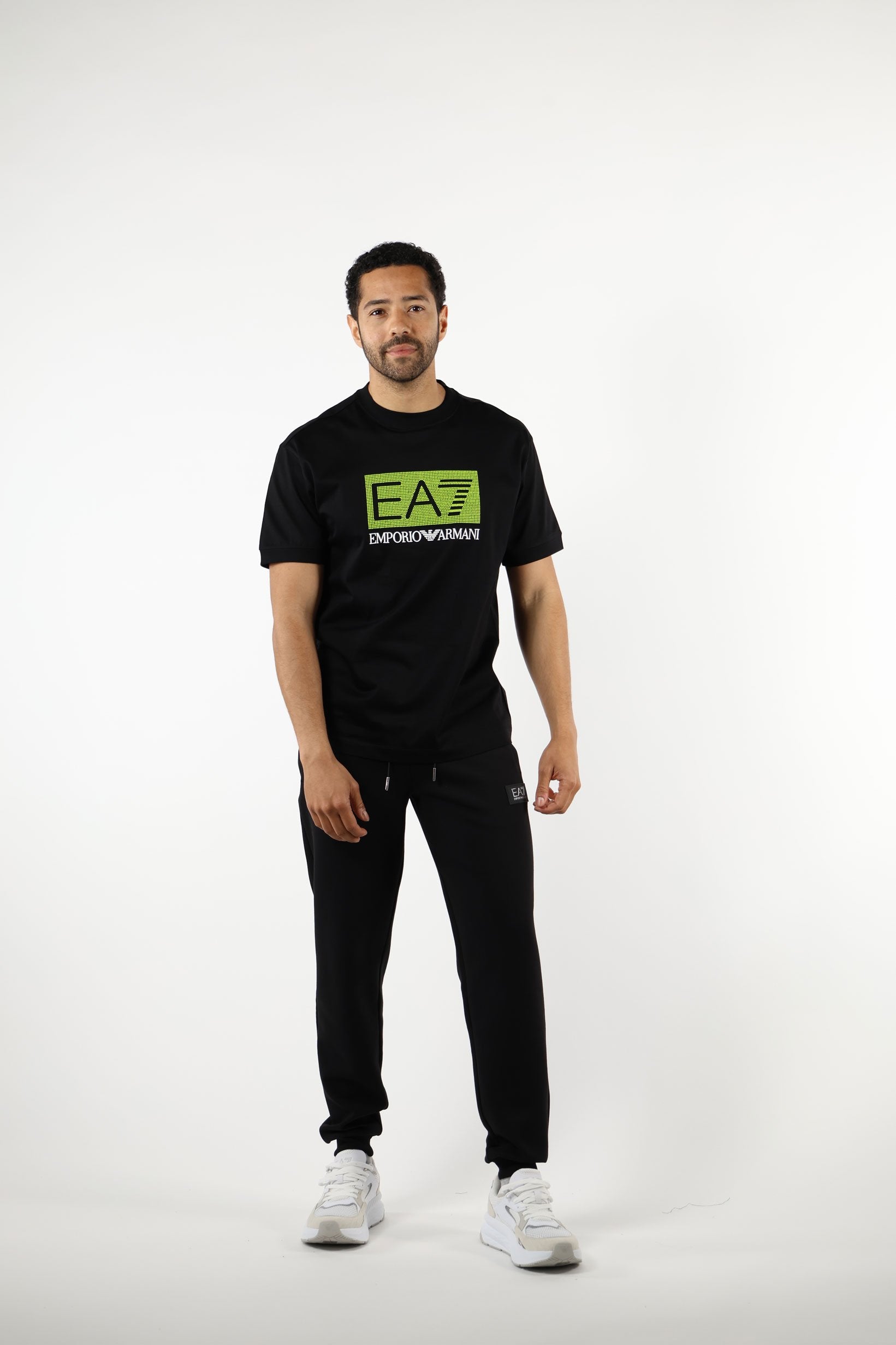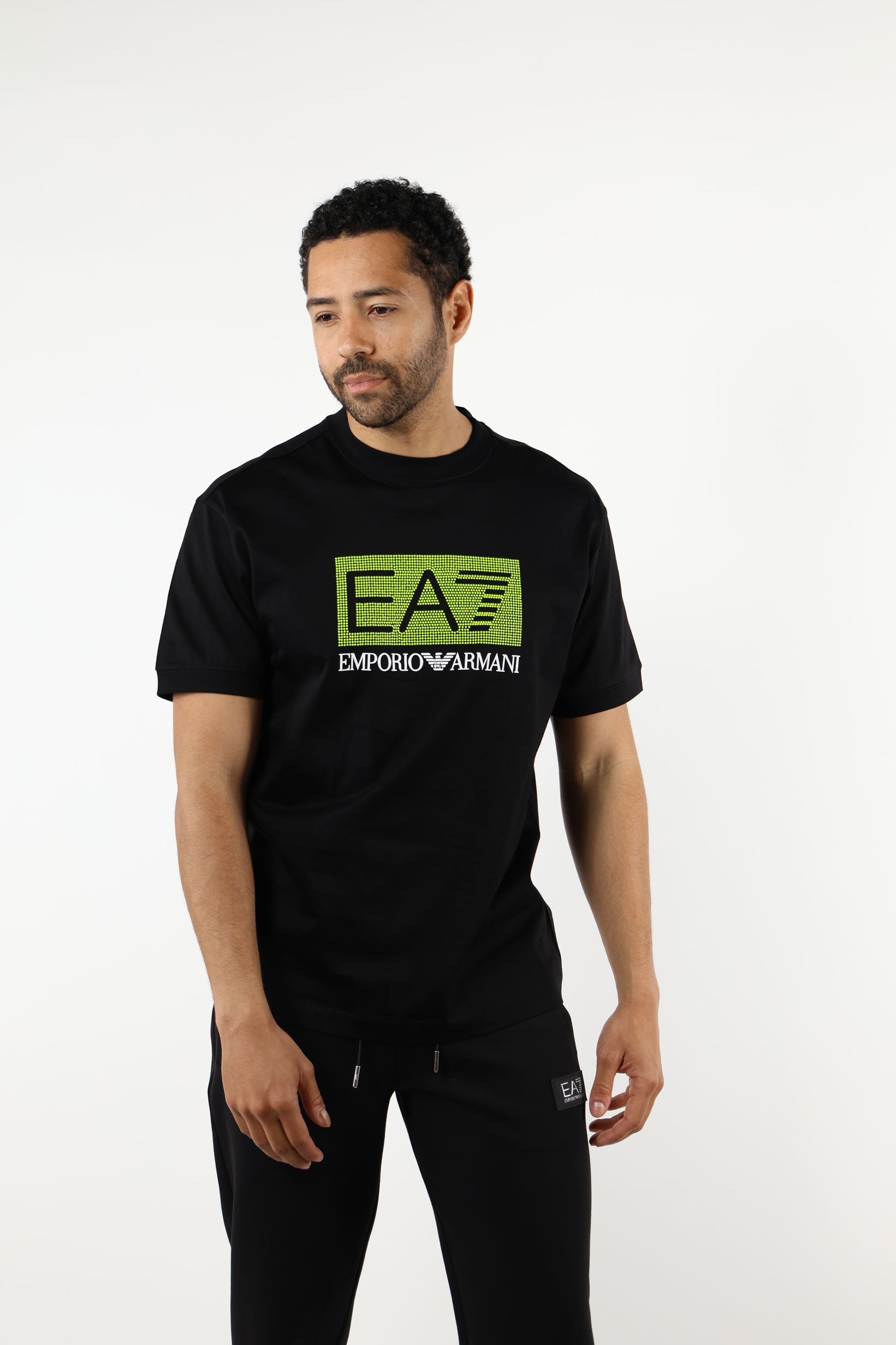 Camiseta negra con maxilogo "lux identity" en recuadro verde - L