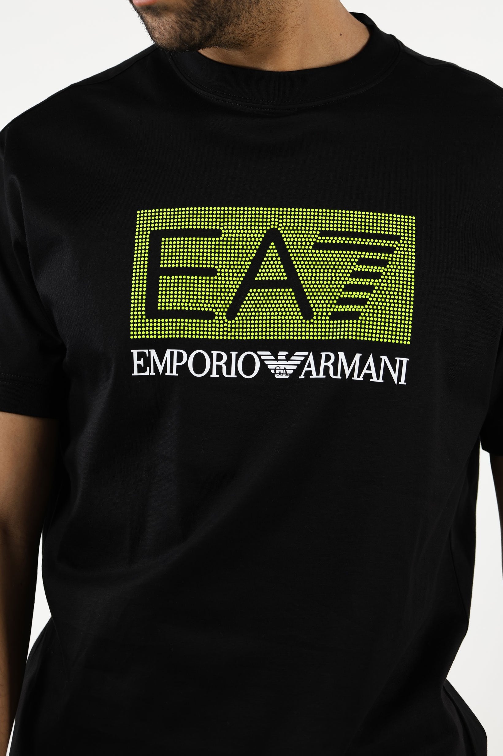 Camiseta negra con maxilogo "lux identity" en recuadro verde - XXL