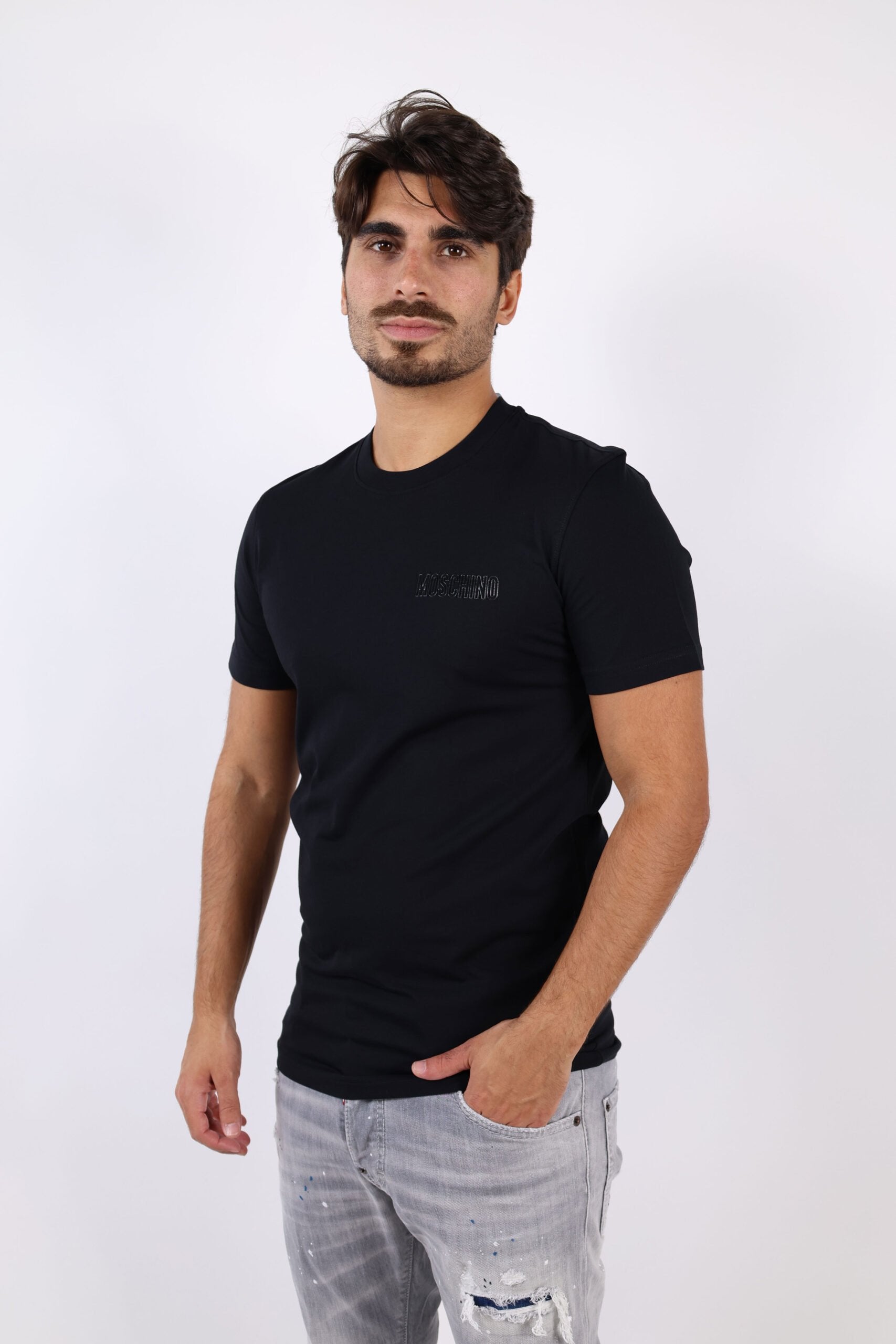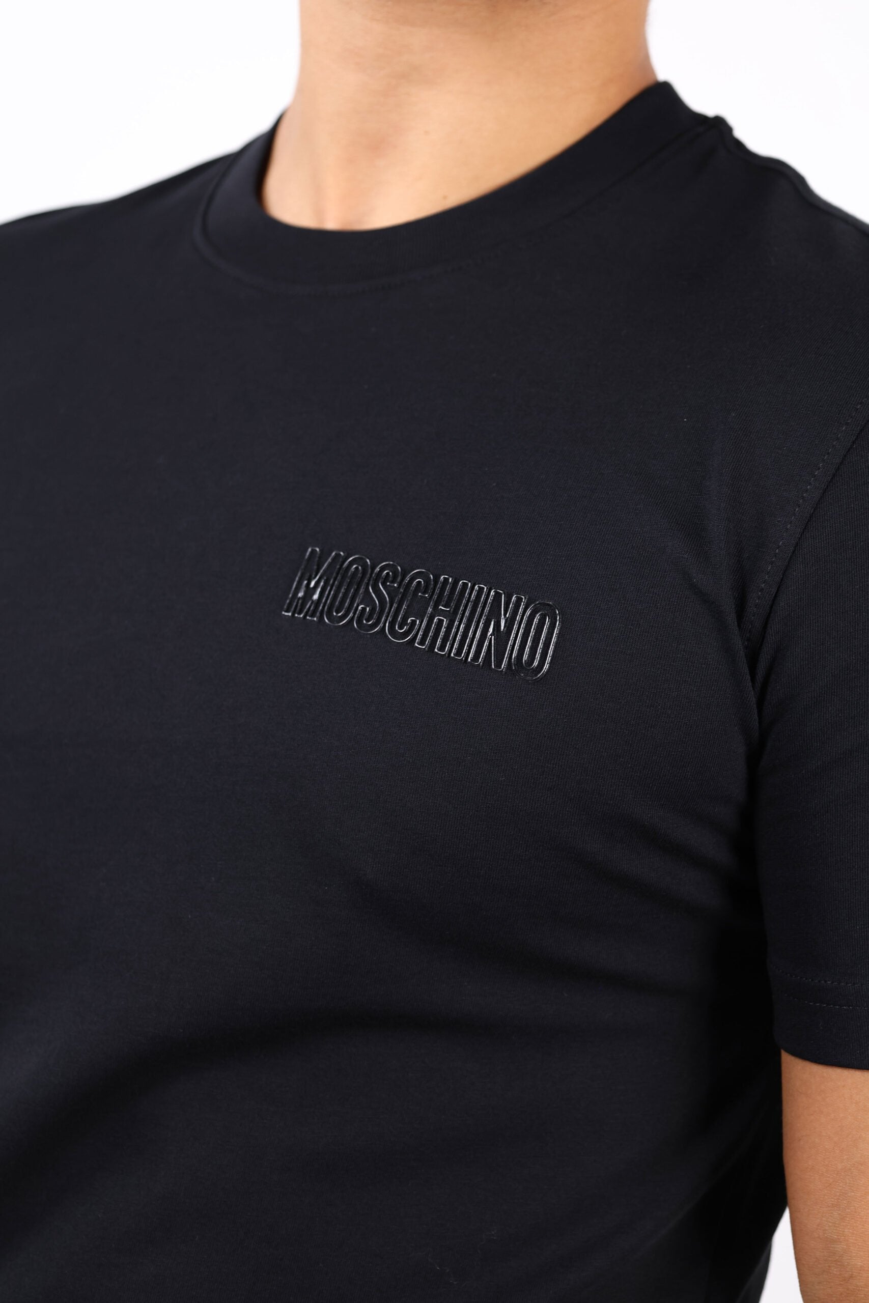 Camiseta negra con minilogo en letras monocromático - S