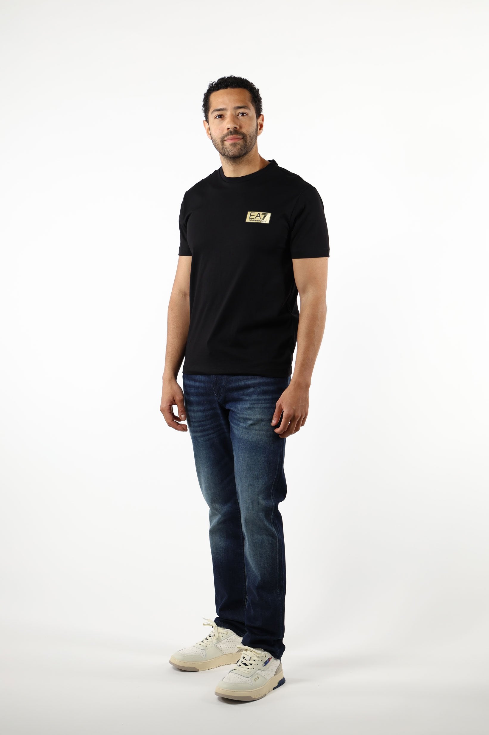 Camiseta negra con minilogo "lux identity" negro en placa dorada - XL