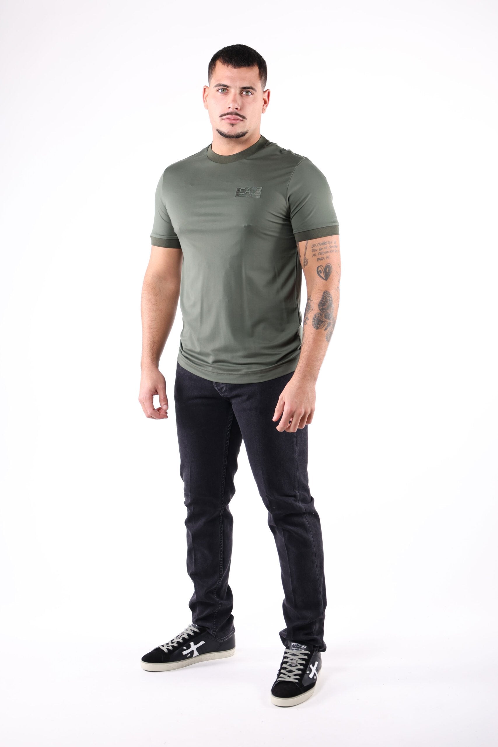 Camiseta verde con minilogo y detalle en mangas y cuello - XXL
