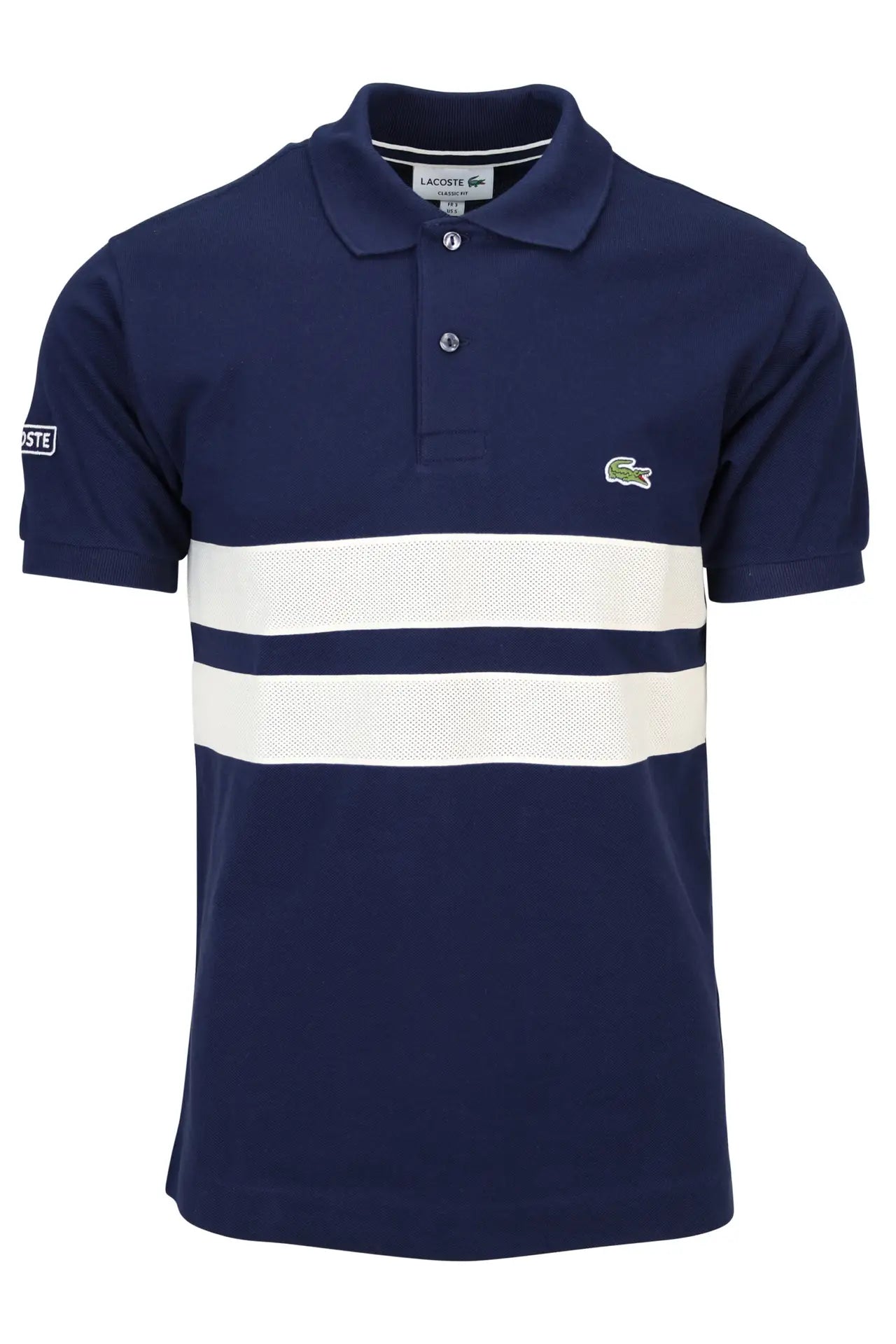 Polo azul marino con lineas horizontales beige y minilogo "lacoste" - XXL -