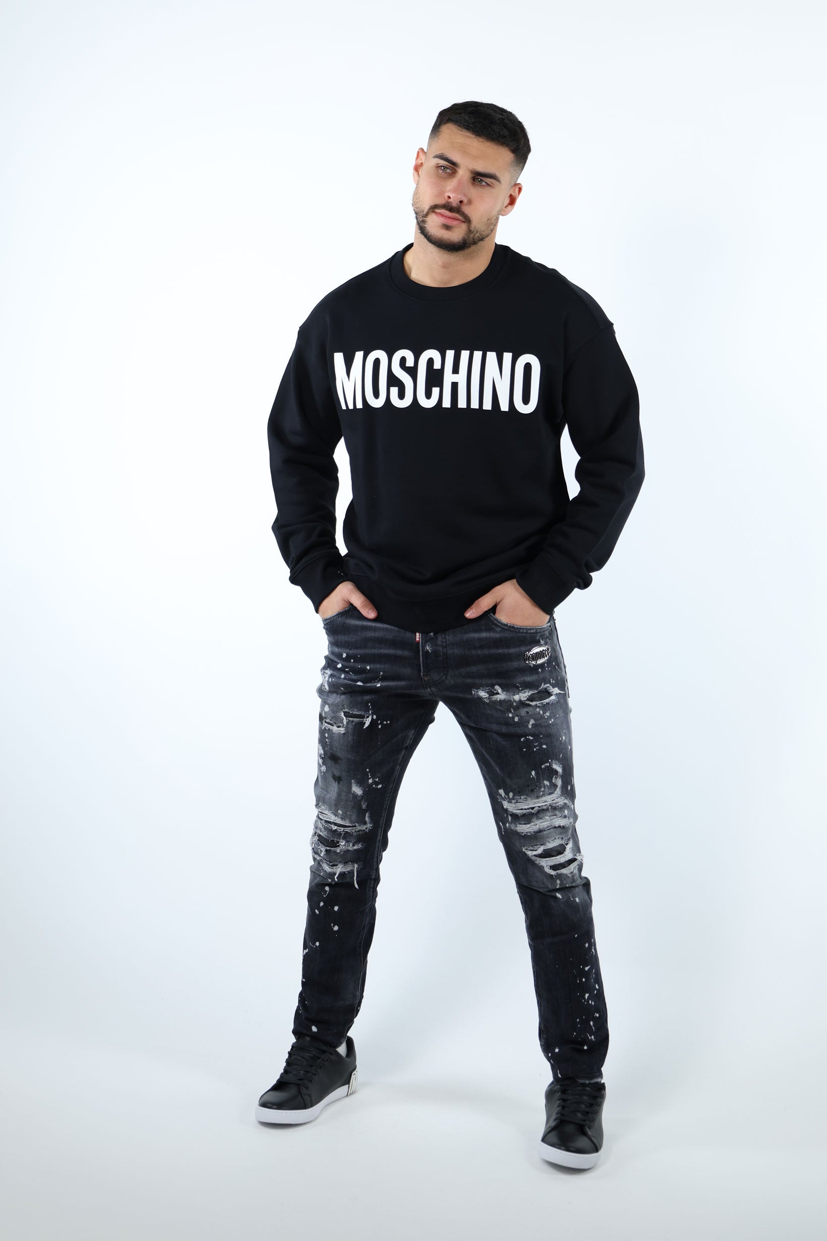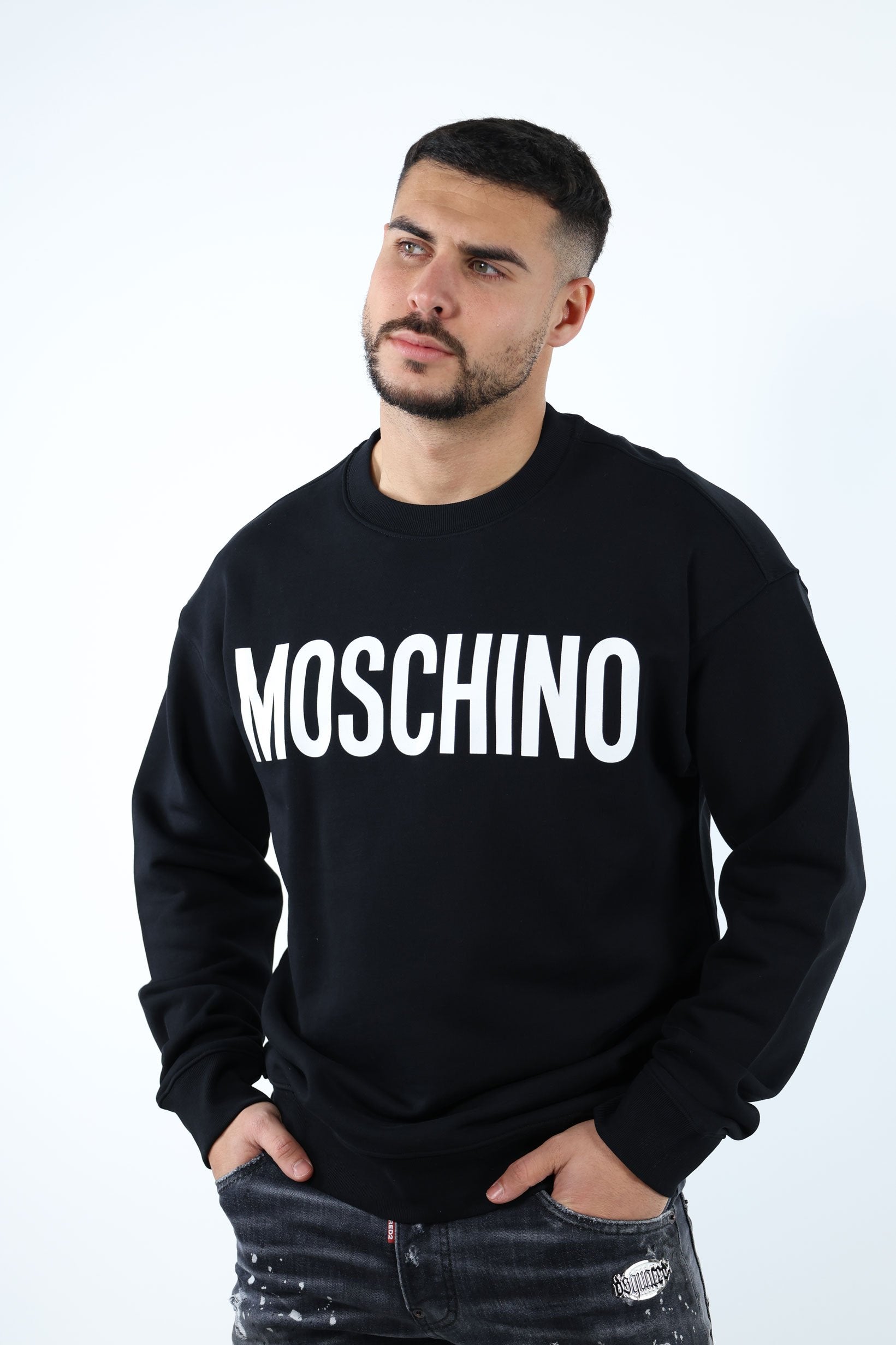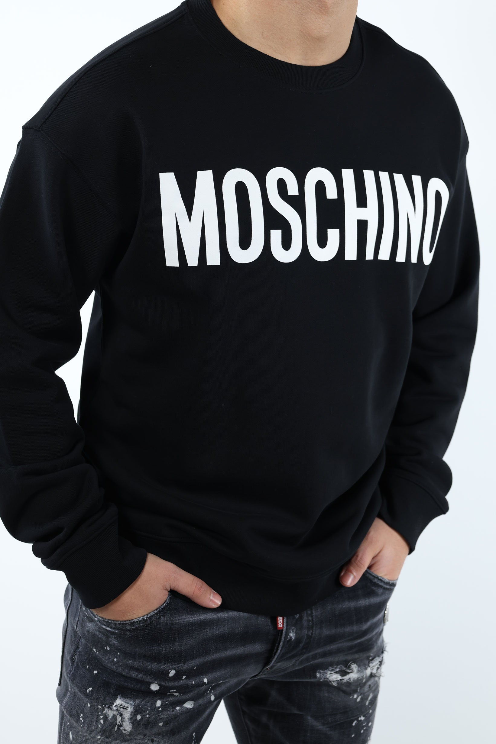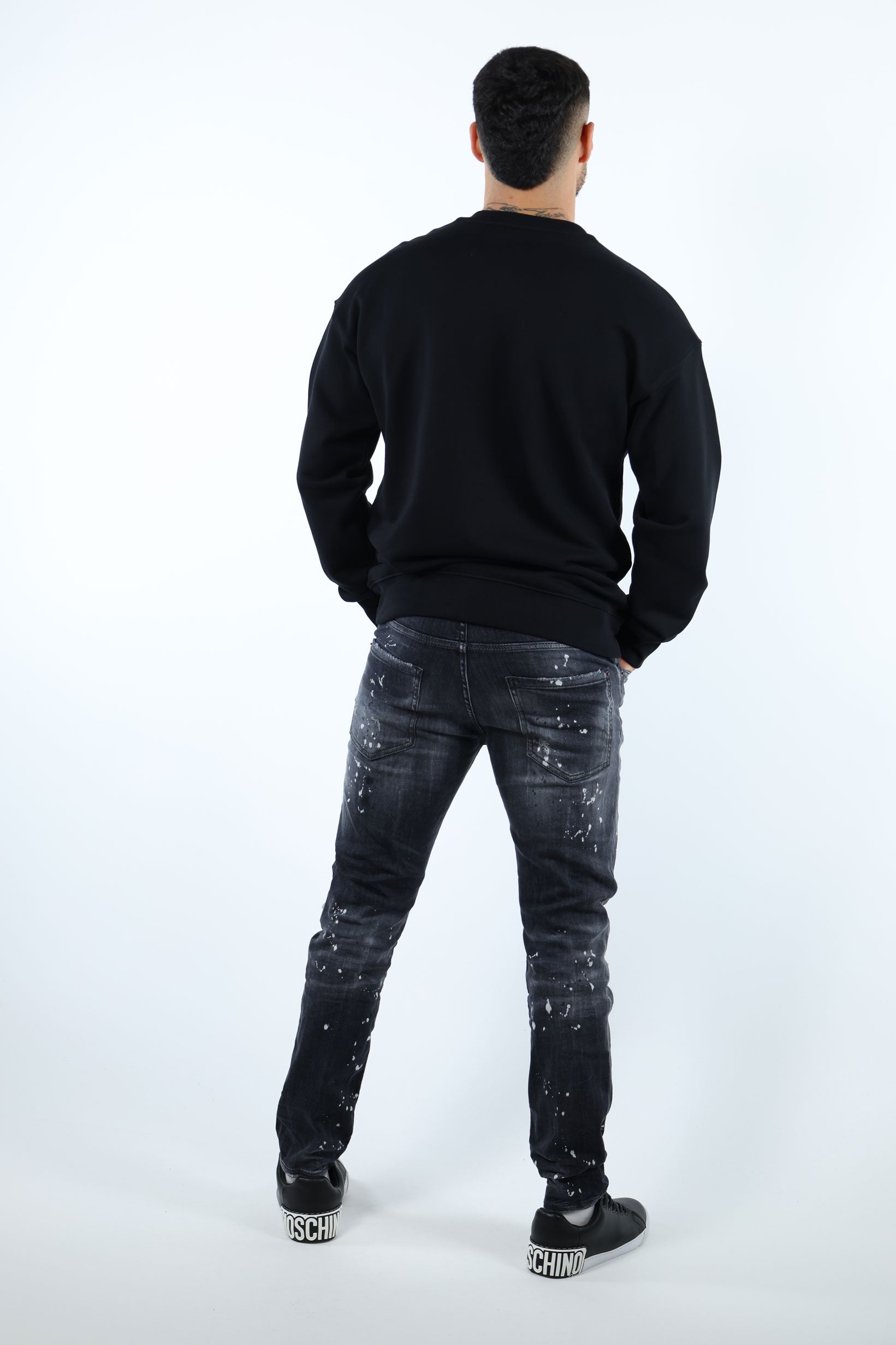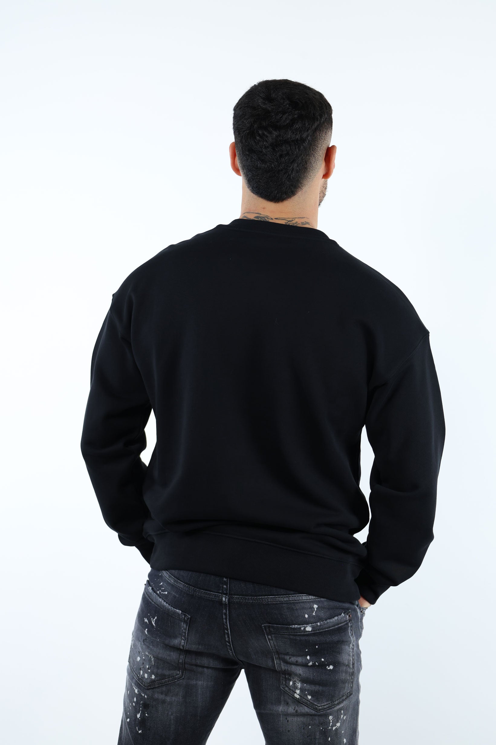 Sudadera negra de algodón orgánico con maxilogo blanco clásico - 54