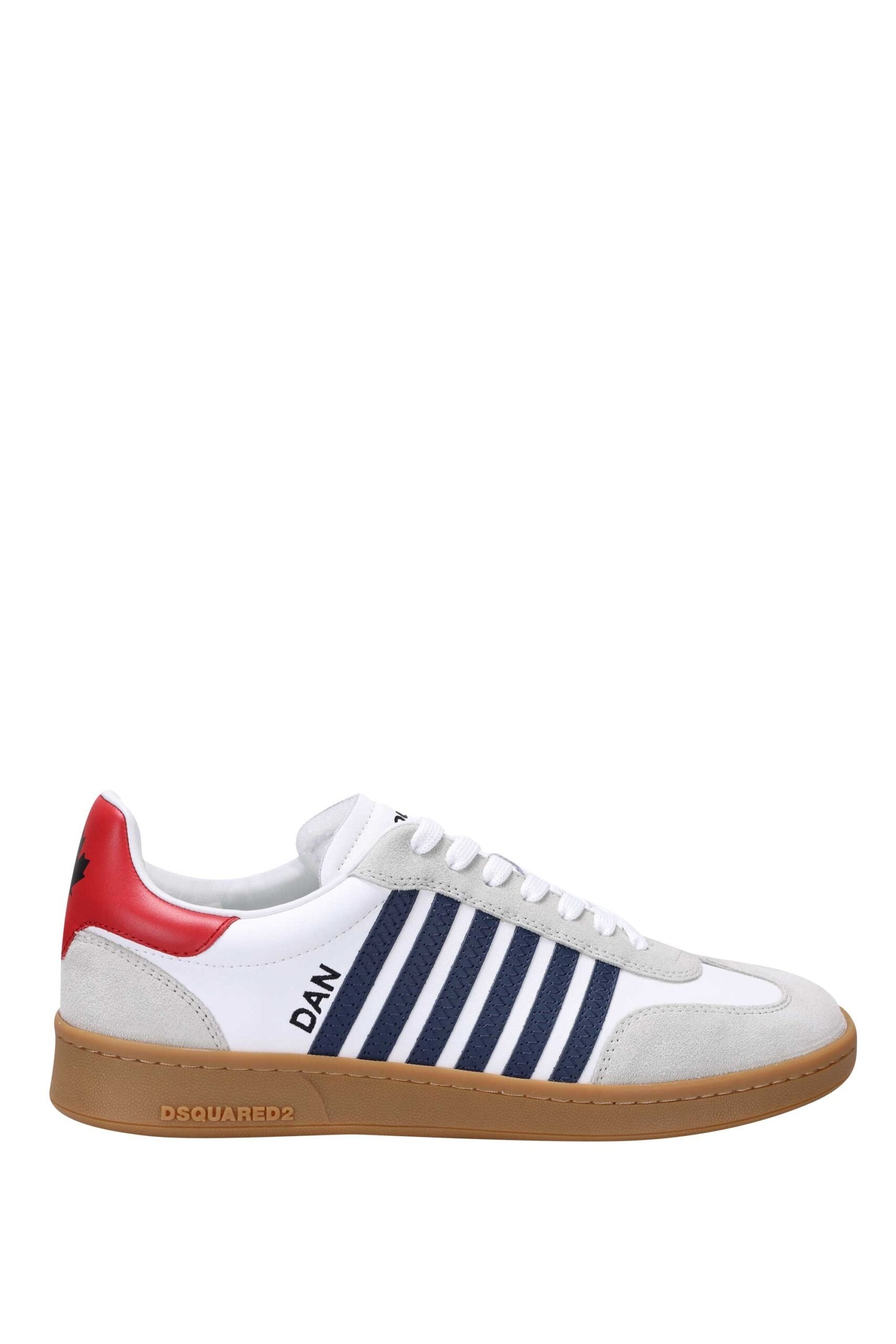 Zapatillas blancas "boxer" con lineas azules y suela marrón - 40
