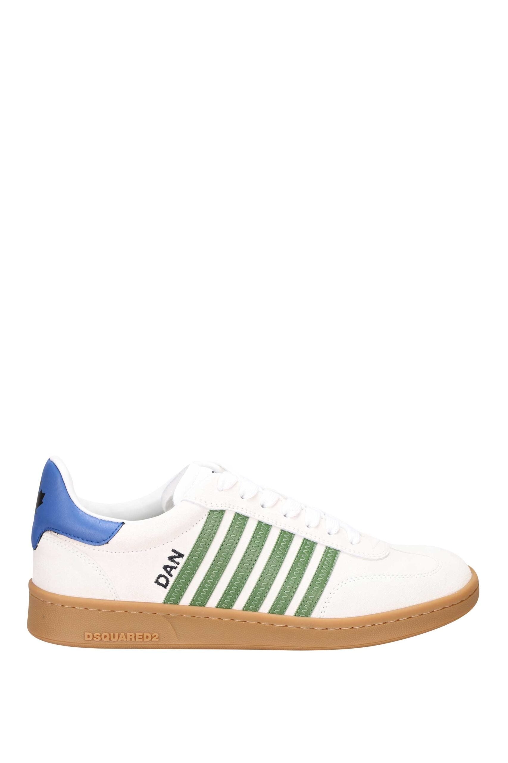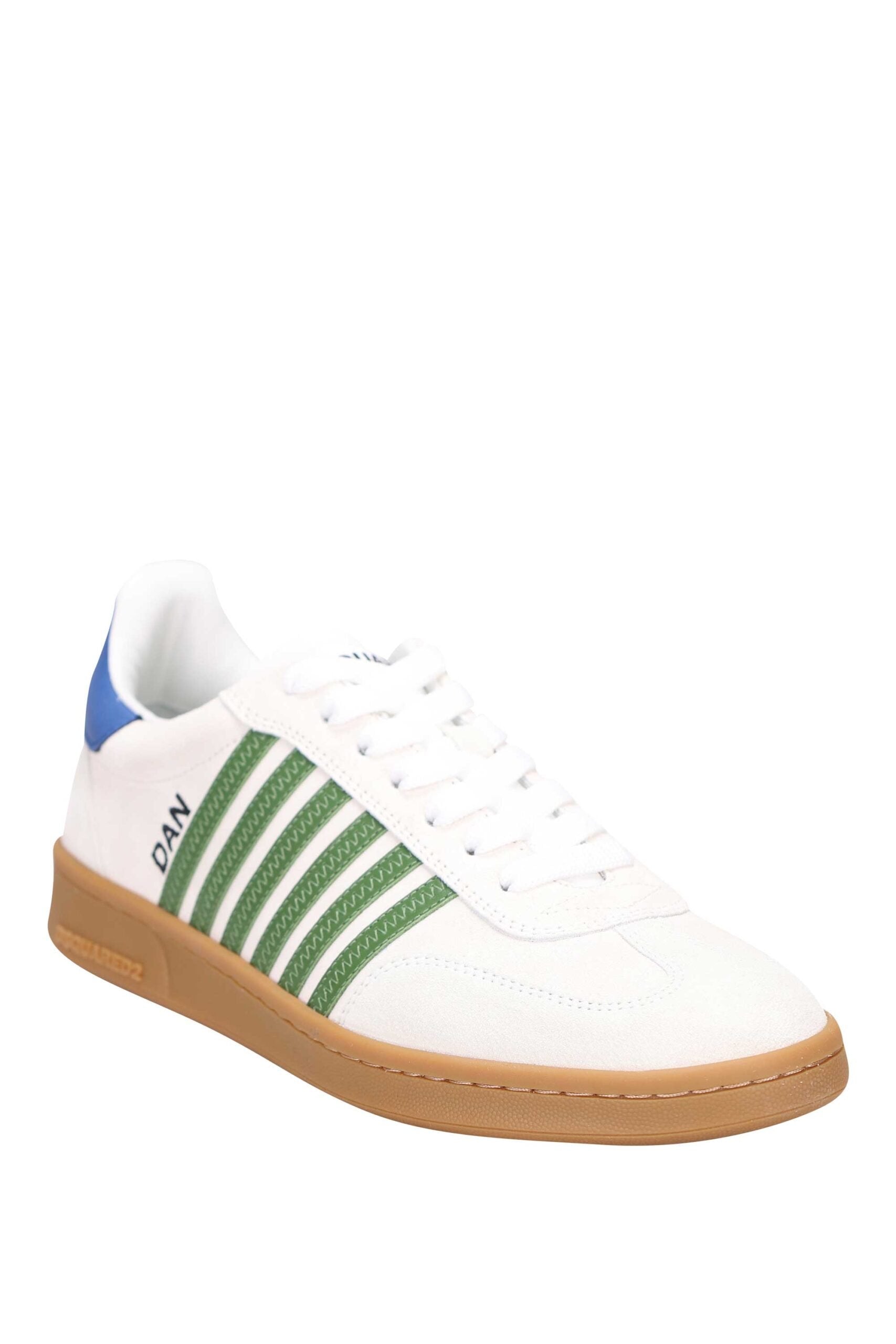 Zapatillas blancas "boxer" con lineas verdes y detalle azul - 42