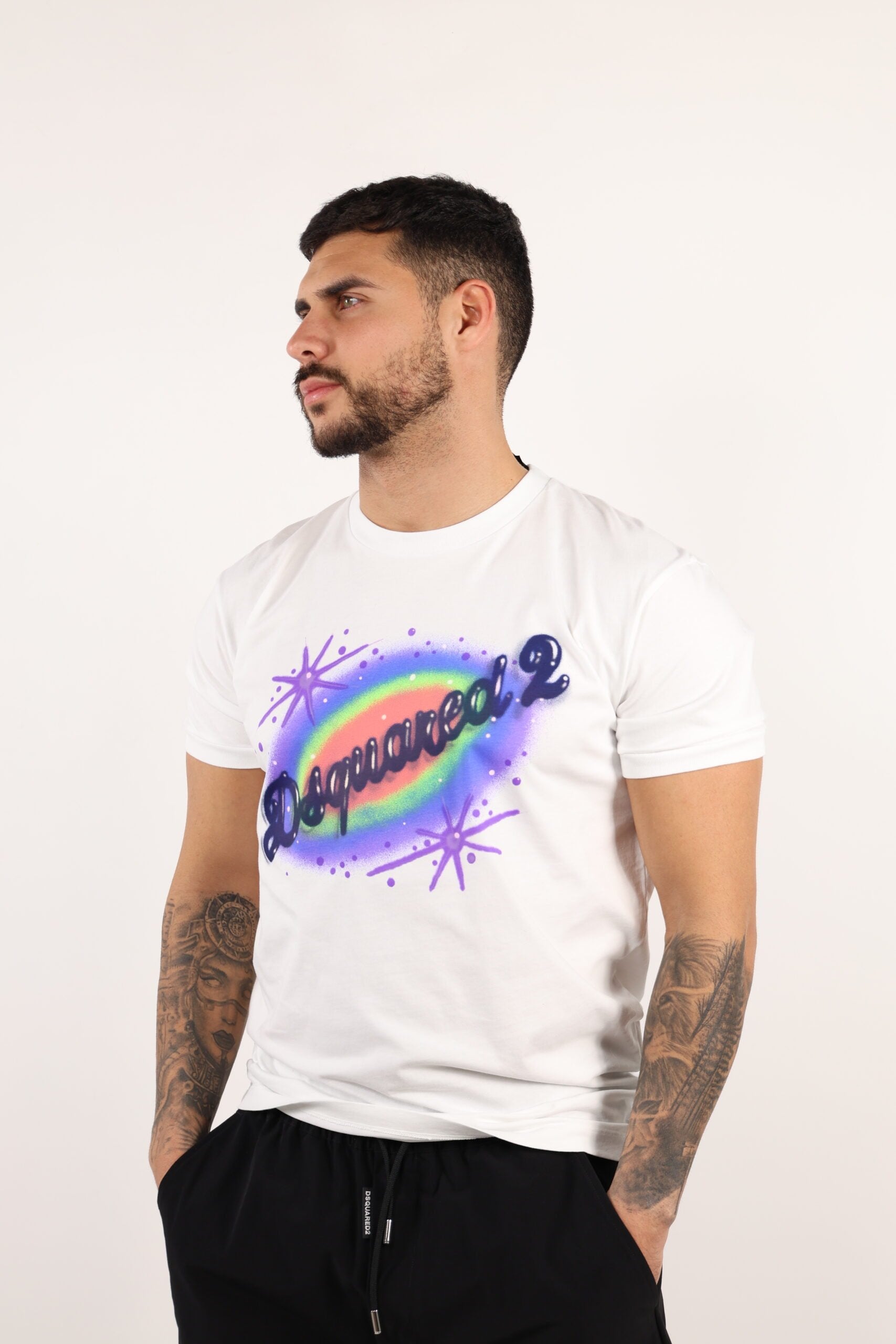 Camiseta blanca con maxilogo multicolor graffiti - XXL